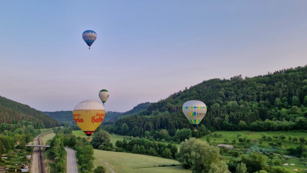 After we had had a lot of rain in springtime in our home region, we were thrilled to fly there again – our last flight there dated back to February! So, we had the time, the balloon and the weather… but no retrieve! What to do? Luckily, the cool morning drainage flow from the mountains …
